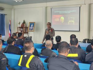 พ.ต.ต.ทวีสิน ดำริห์ สวป.(ชส.)สภ.พรานกระต่ายพร้อมด้วยชุด ชมส.สภ.พรานกระต่ายบรรยายให้ความรู้เกี่ยวกับก