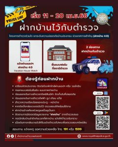 สำนักงานตำรวจแห่งชาติ จัดทำ “โครงการร่วมใจ ยกระดับความปลอดภัยบ้านประชาชนช่วงเทศกาลสำคัญ (ฝากบ้าน 4.